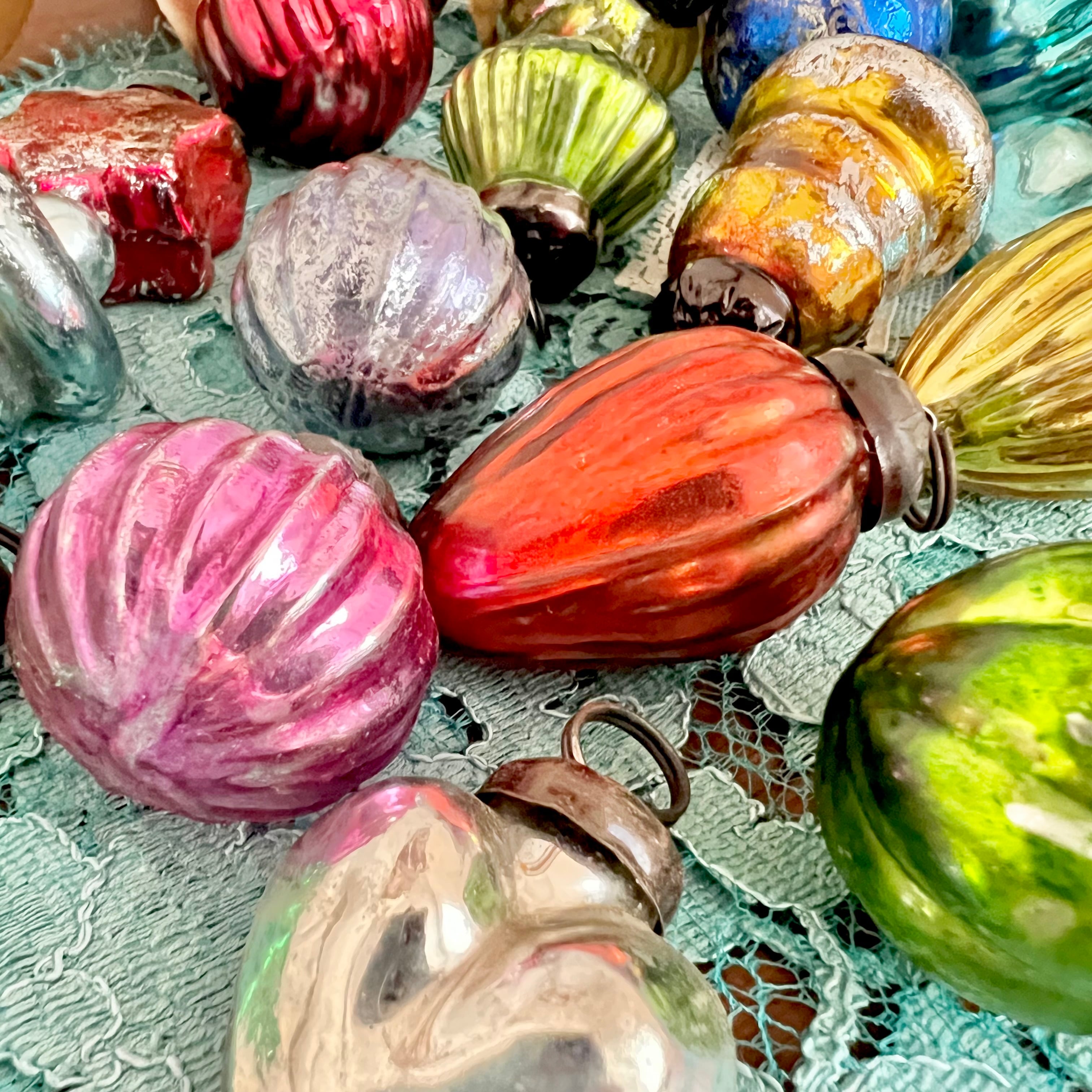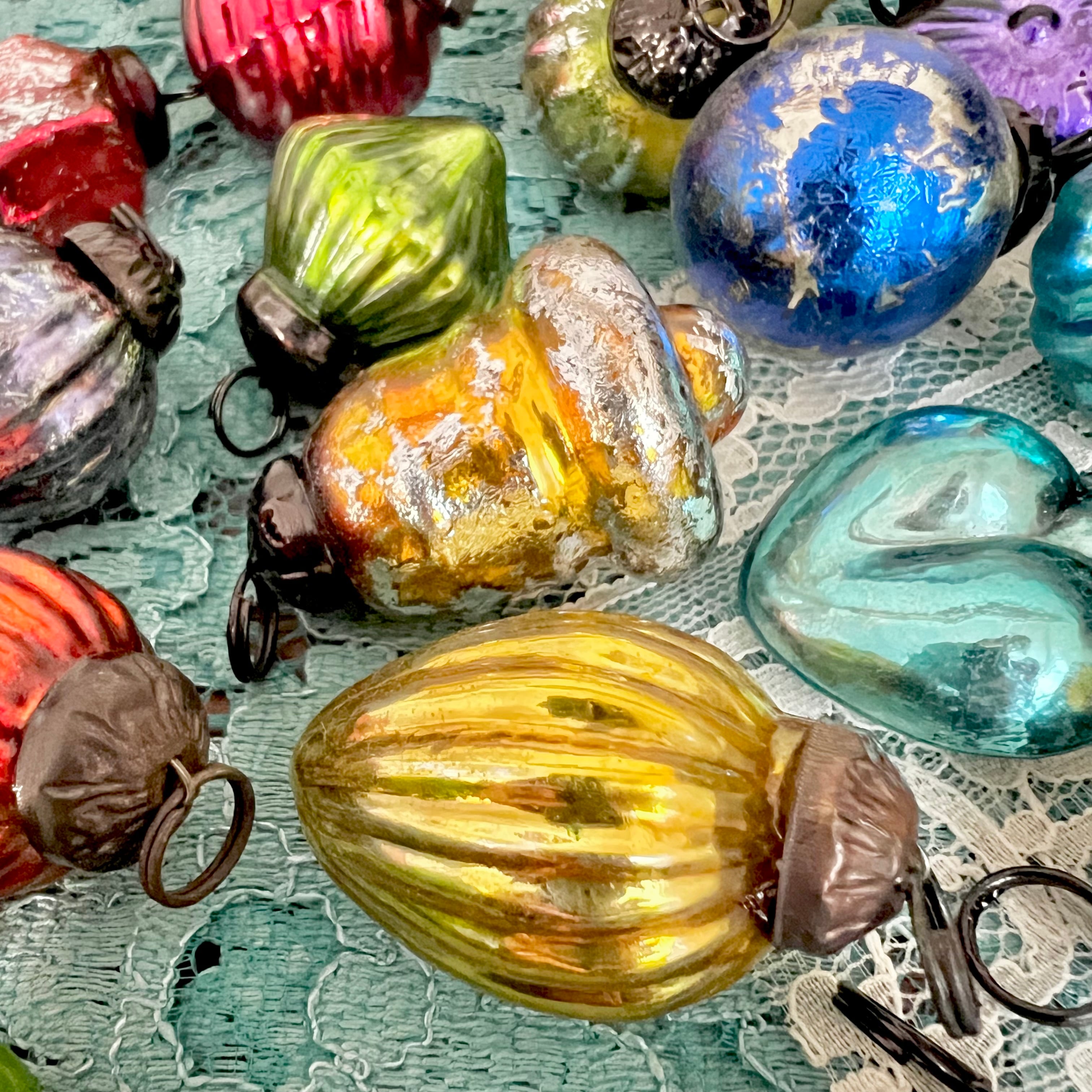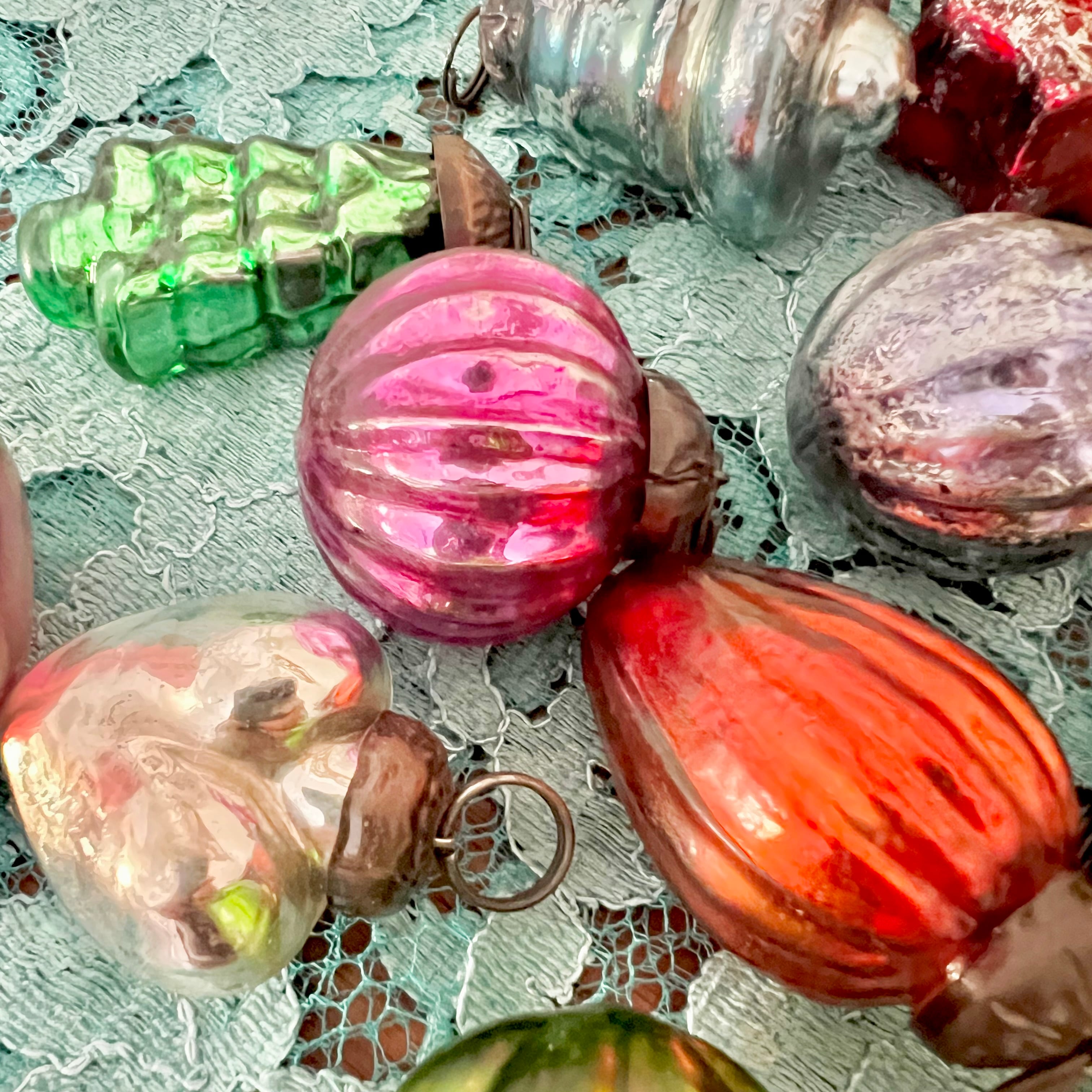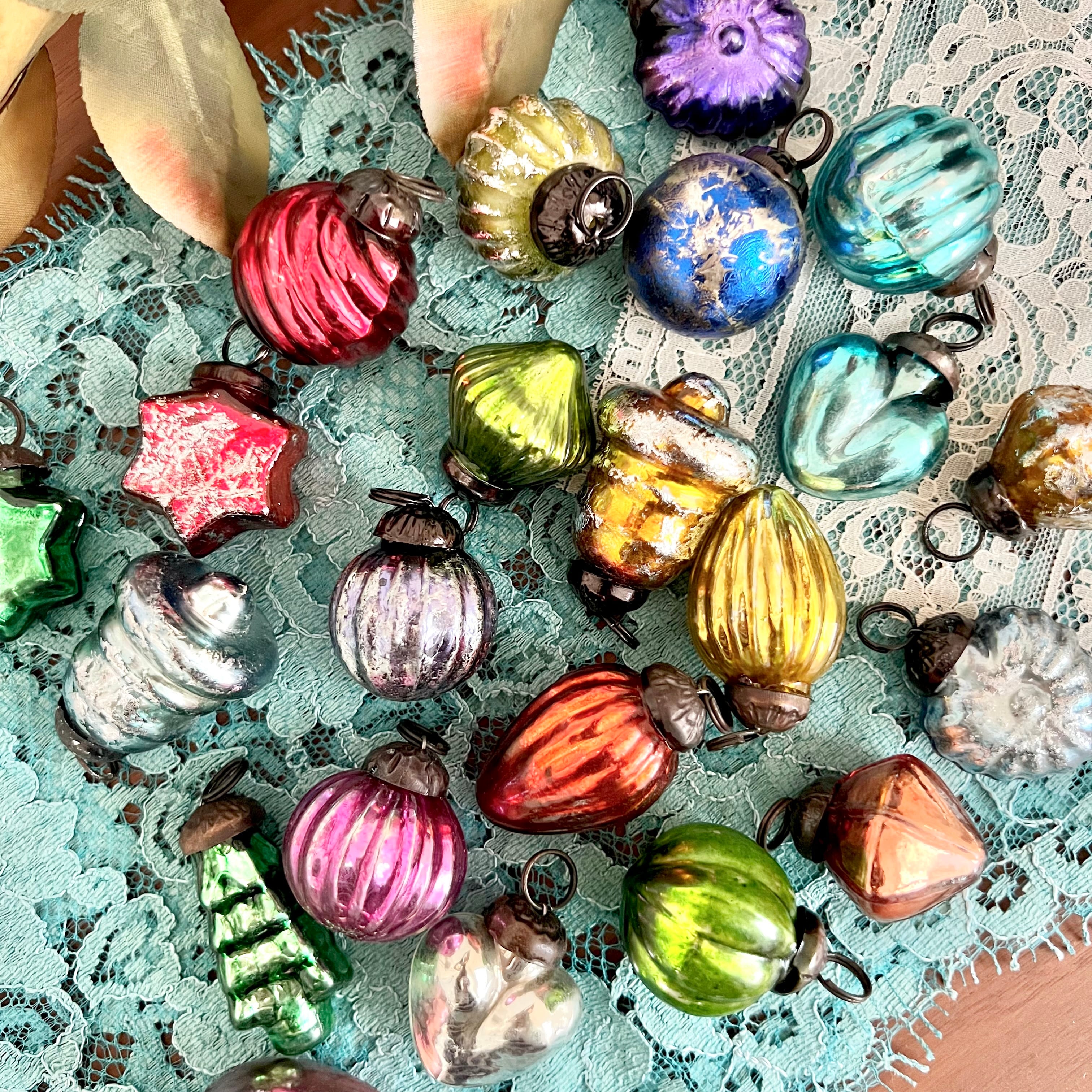 メタリックでカラフルな色味ですが、ヴィンテージのような風合いがとても味わい深く、クリスマスツリーだけでなく、チャームのような雑貨アクセサリーにもぴったりです。