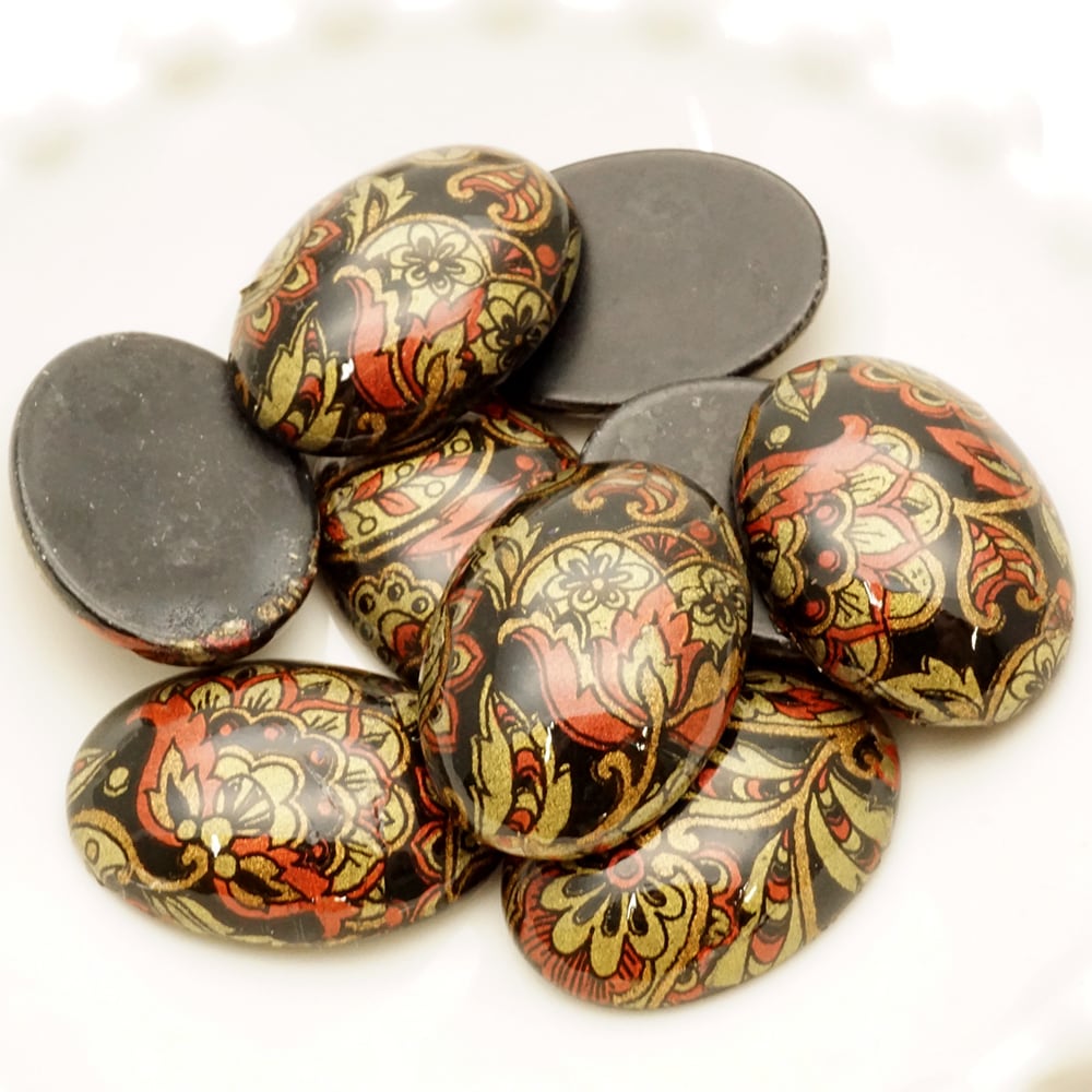ブラックベースにゴールドラメや朱色で描かれたペイズリー柄が繊細でゴージャスなデザインです。