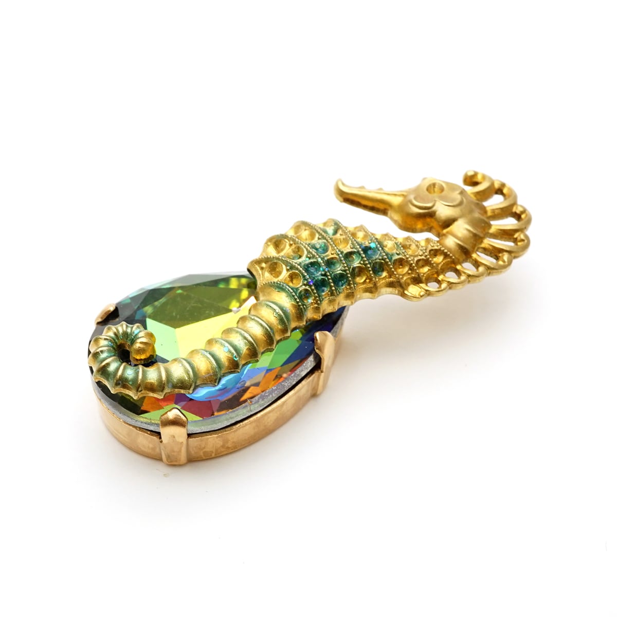 タツノオトシゴモチーフのメタルパーツはハンドペイントのエナメルペイントが施されていて、一つ一つ色ののり方が違っています。