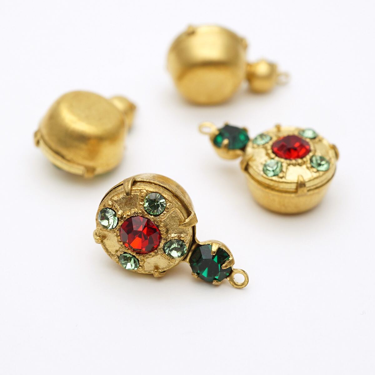 スワロフスキークリスタルのラインストーンを贅沢に使用したハンドメイドのメタルチャームパーツ。